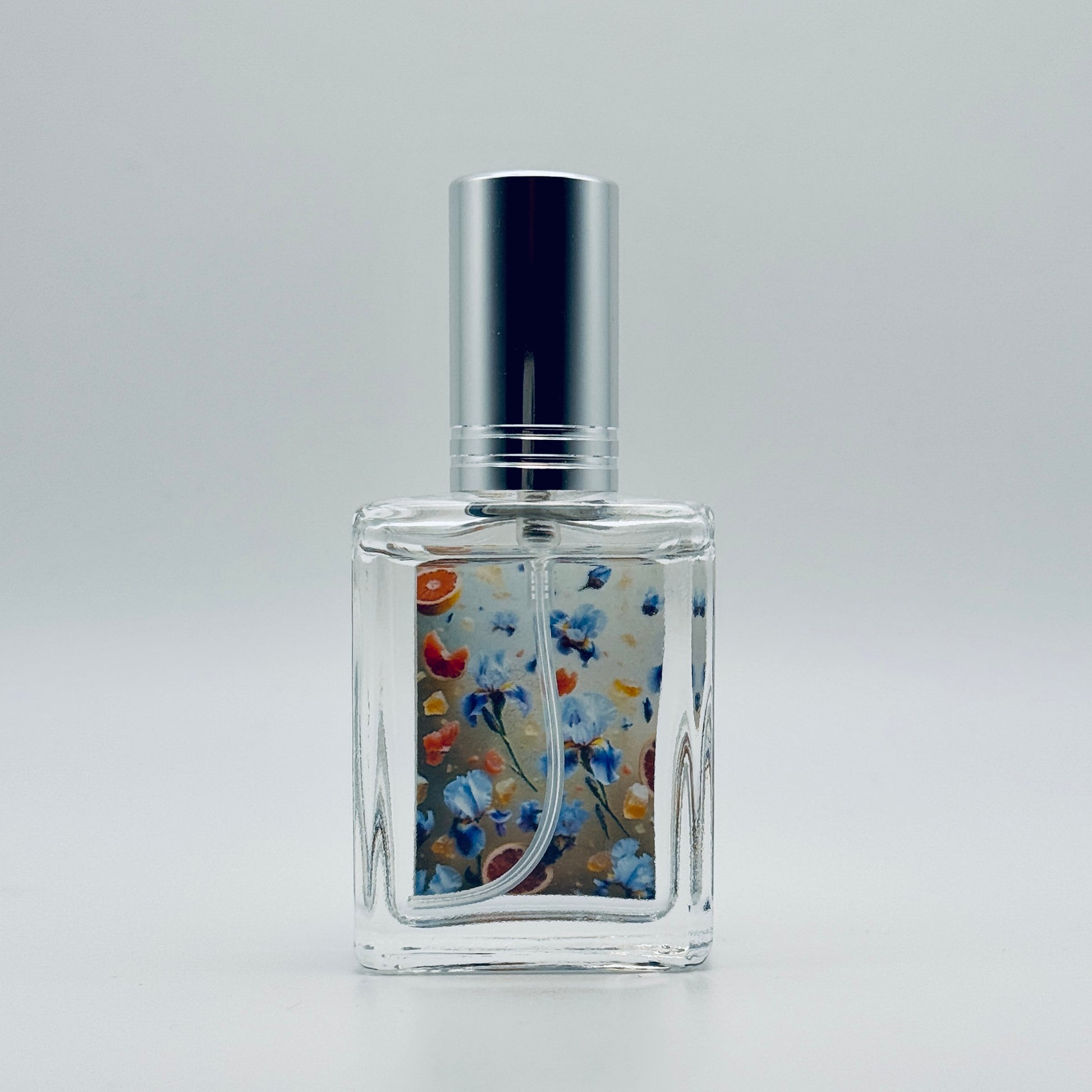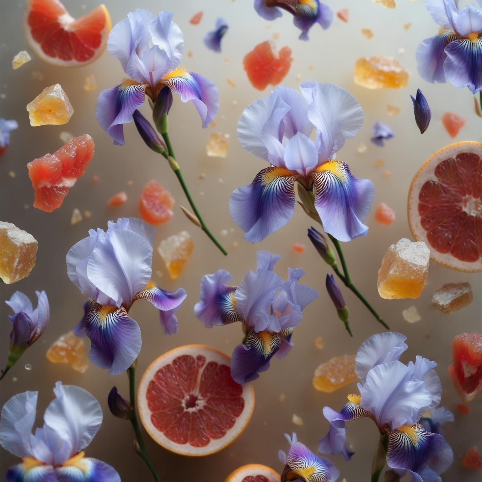 Iris Sunrise opens with sparkling citrus: pink grapefruit and yellow mandarin cut through the softness like sunlight through mist. What follows is not powder, but petal — a fresh and lifted take on Iris, cool and quiet, while Neroli and Geranium lend a floral snap just under the surface.